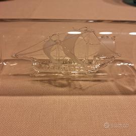 Bottiglia in vetro con veliero all interno,sempre in vetro. altezza circa 22cm nuova mai riempita con liquidi