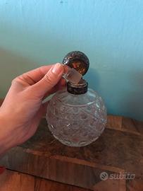 Bottiglia da toilette in cristallo molato con montatura in argento lavorato.