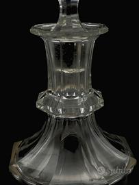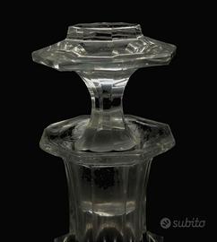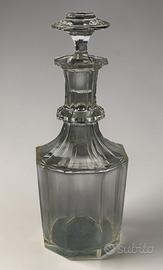 Bottiglia da liquore antica in cristallo soffiato a bocca molato e tagliato a mano! Questa meravigliosa bottiglia, presenta un classico motivo esagonale sfaccettato con spalle e collo ornato da un collarino anch'essi a sfaccettature piatte larghe e un tappo abbinato tagliato con una finitura simile a una pietra preziosa, nello stile di Baccarat: Francia XIX secolo. Non c’è alcuna firma, ma è realizzata in cristallo tagliato di alta qualità. È in condizioni generali: bordo del collo e bordo del tappo leggermente scheggiato, coerenti con l'età e l'utilizzo. Misura: altezza 29,5 x diametro 10,5 cm. Un pezzo raffinato, ideale per il collezionista o l'intenditore di articoli da bar d'epoca.