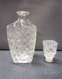 Elegante bottiglia in vetro per liquori. Può essere utilizzata anche come soprammobile e complemento d'arredo. La sigla EDG si riferisce al marchio di arredamento Enzo De Gasperi, che produce bottiglie in vetro decorative, come quelle da liquore. Articolo in buone condizioni esattamente come in foto. Senza confezione originale. Misure: Altezza con tappo: 24 cm circa Larghezza corpo della bottiglia: parte bassa 7 cm parte alta 9 cm