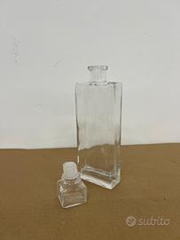 Bottiglia Decanter in vetro con tappo – Design minimal/Vintage Vendo elegante bottiglia decanter in vetro trasparente di alta qualità, completa di tappo originale coordinato in vetro.
