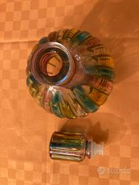 Dotata di un tappo in vetro abbinato, anch'esso scanalato e iridescente.