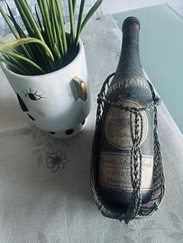 Bottiglia di vino rosso pregiato di annata 1971 Amarone Recioto della Valpolicella casa Bertani,sempre sdraiato nel suo cestino contenitore,per collezionisti intenditori.