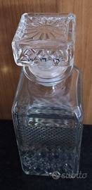 Bottiglia di liquore antica vetro lavorato e tappo