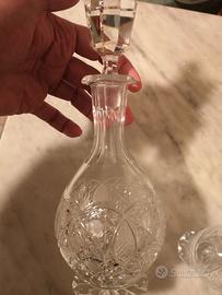 Bottiglia e 4 bicchieri cristallo Rogaska
