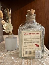 Bottiglia Elephant Gin trasformata in una decorazione luminosa con luci LED calde a pile e interruttore sul retro, fissato con colla a caldo ✨
