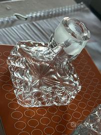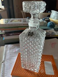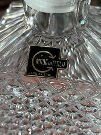 Pregiata bottiglia in cristallo finemente lavorato, dimensioni esterne altezza 26cm e larghezza 8cm.