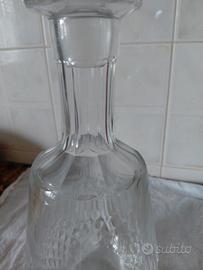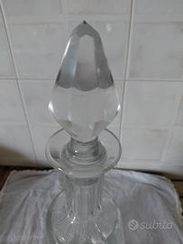 Bottiglia in cristallo per vino o acqua con tappo a punta,lavorata sul fondo