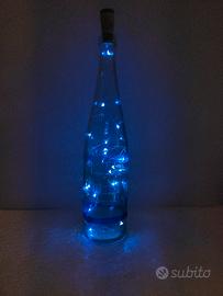 Bottiglia decorativa "Onde" realizzata a mano pezzo unico, con o senza tappo di luci. Il tappo è rifinito con nastro di organza. Prezzo compreso di luci è 10 euro.