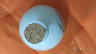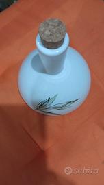 bottiglia in ceramica decorata, per contenere olio, marchio Claraluna, nuova mai usata con tappo in sughero .