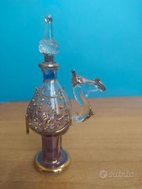 Bottiglia in vetro soffiato porta profumo od oli molto raffinata con decorazioni in oro raffigurante un cammello