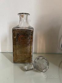 Contenitore a forma quadrata x wisky o rum con decorazioni elaborate incise o modellate sui lati colore dorate