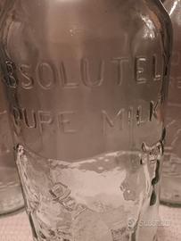 bottiglia in vetro verde 100% riciclato "SanMiguel". misura cm 31 e contiene 1 litro. ha una simpatica lavorazione in rilievo che rappresenta la mungitura di una mucca con il relativo mungiturae seduto. oggetto databile anni 80. prodotoi nuovo mai usato. sono disponibili 3 pezzi e il prezzo indicato è per un solo pezzo.