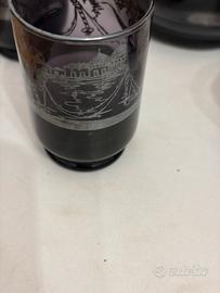 Bottiglia con bicchierini decoro Veneziano difetti evidenziati in foto