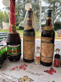 Vendo 9 bottiglie antiche e 5 mini bottigliette , di cui vini , champagne , amari e distillati , tenute in cantina.