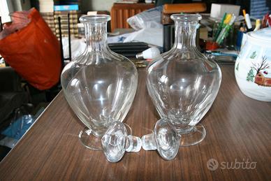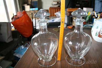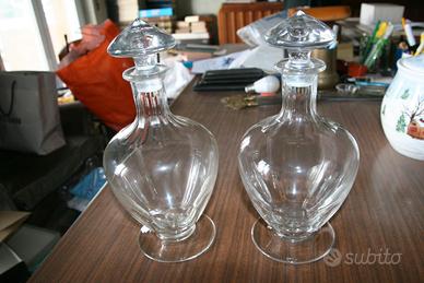 coppia di bottiglie vintage per liquori in vetro