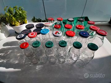 - 54 bottiglie per vino, perfettamente pulite e pronte all'uso: euro 20 in tutto - 37 bottiglie per vino bianco, perfettamente pulite e pronte all'uso, alcune in vetro trasparente e d altre in vetro verde chiaro, come nella foto n. 4: euro14 in tutto - 7 bottiglioni per vino d al. 1,5: euro 3 in tutto - 30 bottiglie per salsa di pomodoro, perfettamente pulite e senza etichette: euro 12 in tutto