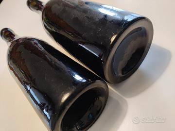 6 bottiglie vuote per vino, antiche (primi 900), verdi scuro, usate, dimensioni e forme leggermente diverse, ma tutte circa 1 L