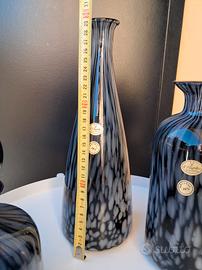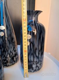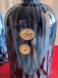 Set di 3 bottiglie, anni '70, colore nero e grigio con leggeri riflessi violacei, vetro non trasparente. Non presentano sbeccature né crepe. Leggeri segni del tempo. Come da etichetta riconducibile a "il Magnifico" Fornaci di Toscana. kristal 18%.