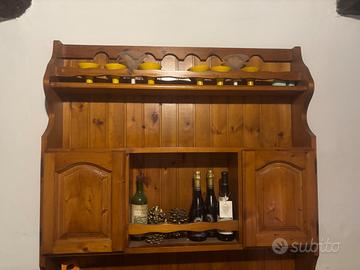 Bellissima bottigliera bancone bar mai usato . In legno di pino massello! Eccellente affare ! Con anche sedia abbinata