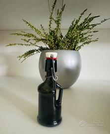 Stock di 24 bottigliette in vetro scuro con tappo meccanico, perfette per liquori fatti in casa, oli aromatizzati o come decorazioni originali.