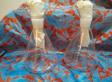 2 bottigline con dosatore olio e aceto in vetro mai usate nuove