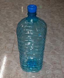 Vendo bottiglione in plastica trasparente con tappo a vite di colore blu, capienza circa 18 litri. Realizzato in plastica resistente e leggera, adatta al contatto con alimenti. Ideale per contenere acqua potabile, vino, olio, succhi o altri liquidi alimentari.
