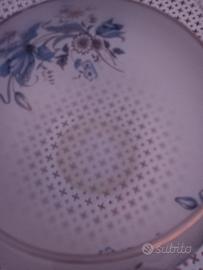 boule bianco latte di vetro decorata con motivi floreali su 2 lati con colori azzurri e dorati . presenta sul fondo esterno un segno circolare come di colla , facilmente rimovibile. la doratura del bordo in alcuni punti è un po sfocata . anni 80 .