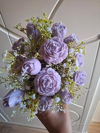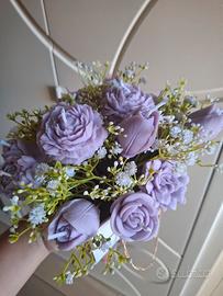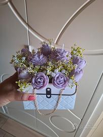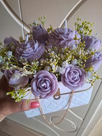 bouquet di fiori con cera di soia fatte a mano in borsetta
