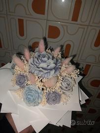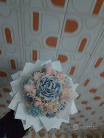 bouquet in cera che non appassisce mai con fiori stabilizzati e codine in cera di oliva ideale per un regalo che non appassisce