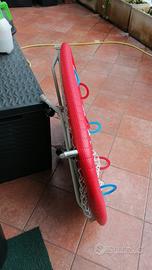Box bimbo vintage anni 80. 105x80 x h75 Apertura con una manovra semplicissima a gravità, colore rosso vivace , 6 maniglie per il bimbo, pianale rigido per facilitare la posizione eretta del bimbo, rete a maglie larghe, due ruote, utilizzabile anche come lettino.