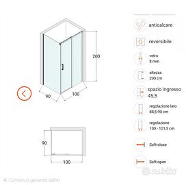 Vendo box doccia 100x90 mai usato, è solo stato montato e rismontato per misura errata.