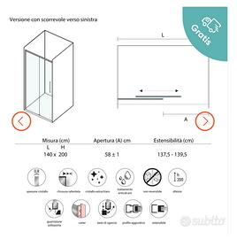 per acquisto errato (sbagliata apertura) e vista l'impossibilità di restituzione (l'installatore aveva buttato gli imballaggi) svendo box doccia comprato su sito deghi a 880 euro, il prodotto è nuovo, montato soltanto a metà (ci siamo accorti dopo dell'errore), lascio sotto la descrizione presa dal sito.