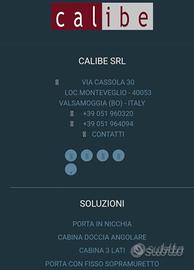 Vendo bellissimo box doccia nuovo marca Calibe, 70 x 100, acciao e cristallo. Ottimo prodotto. Provvisto di tutto, accessori e istruzioni per il montaggio. Esattamente corrispondente alla foto da catalogo allegata. Vendo causa misure errate. Vera occasione. Prezzo di acquisto 1500 €