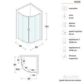 Vendo box doccia 80x80 cm semicircolare ad angolo H.185 cm. con vetro temperato trasparente