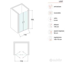 BOX DOCCIA NICCHIA 110CM SALOON CON VETRO ANTICALCARE OPACO E PROFILO CROMO 195 H -LOST PAGATO 245 € ANCORA IMBALLATO ...CAMBIATO TIPOLOGIA DOCCIA HO DOVUTO ACQUISTARE UN'ALTRO DA 140 CM, SPEDIZIONE A CARICO DELL'ACQUIRENTE. L'OGGETTO SI TROVA A FROSINONE CENTRO PS: RIPETO ANCORA IMBALLATO