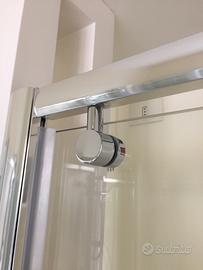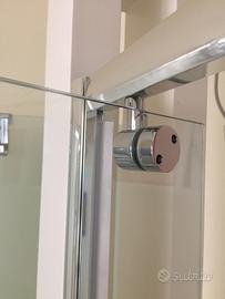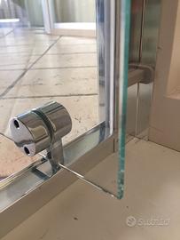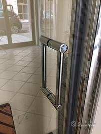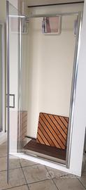 Porta doccia 1 anta a battente con apertura verso l'esterno. Lastra in cristallo 6 mm temperato. Profili in alluminio. Varie misure in larghezza. Altezza 185 cm. Reversibile. Maniglia in ottone 14 cm. Guarnizione inferiore per la tenuta dell'acqua. Altezza profilo superiore ed inferiore 3,5 cm. Marca CESANA. Disponibilità: Misura da 73 a 79 Alluminio satinato e vetro trasparente Misura da 79 a 85 Alluminio satinato e vetro opaco Misura da 85 a 91 Alluminio satinato e vetro opaco oppure trasparente. Acquistandone 3 pz il prezzo di ciascuna porta è ?50