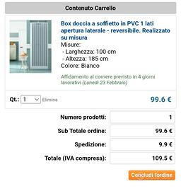 Prezzo € 60 non negoziabile Spedizione tramite UPS a richiesta GARANZIA ACQUISTO Rimborso se non ricevi quello che hai ordinato La restituzione viene accettata esclusivamente se le immagini e la descrizione non dovessero corrispondere e in presenza di vizi non dichiarati dell'oggetto in vendita Consiglio la visione di tutti gli annunci cliccando "Annunci online" Annuncio pubblicato = Annuncio disponibile Linea Doccia 100% Made in Italy Box doccia a soffietto in PVC in kit fai da te Apertura laterale simply reversibile DIMENSIONI - Altezza 185 centimetri - Larghezza 100 centimetri accorciabili in fase di installazione Comprende manuale istruzioni di montaggio e di installazione Assolutamente nuovo di zecca nel suo imballo originale sigillato Pagamento tramite TuttoSubito - Bonifico bancario - Contanti alla consegna Consegna GRATUITA a Venezia - Tronchetto - Piazzale Roma e Stazione Ferroviaria info Mirko ZAMBON ☎️ 3401633827 SONO DISPONIBILI I SEGUENTI PRODOTTI Poltrona Frau Vorwerk Folletto Artemide Kensonic Accuphase Copland Kenwood TS Yaesu Icom Sommerkamp Alinco Drake JRC FlexRadio Lafayette Midland Cobra Tenko Courier Pearce Simpson RCA Teaberry Royce Pace Diamond Zetagi Robyn Surveyor Audiovox SBE Hi-Gayn Sears Gemtronics Sparkomatic Skyfon Sharp Boman Fieldmaster General Electric Prominent Realistic Regency Ray Jefferson JCPenny President Uniden Intek Motorola Polmar Roland Turner Hansen Proxel ICE Monacor Daiwa Microset Maas Stabo Astatic Shure Decca Nissei LDG MFJ Oskerblock Anytone Stalker Radio HF Radio CB Radioamatore Ricetrasmettitore Ricevitore Antenna Direttiva Accordatore Alimentatore Microfono Valvolare Valvola Commutatore Vintage Bird Scanner Lineare Wattmetro Rosmetro RG58