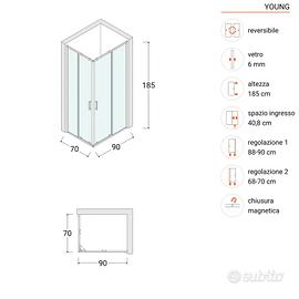 Box doccia angolare 70x90 - h=185 cm