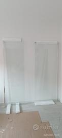 cristallo da 6mm trasparente con finiture argento lucido più suoi accessori , reversibile , chiusura con profilo magnetico.