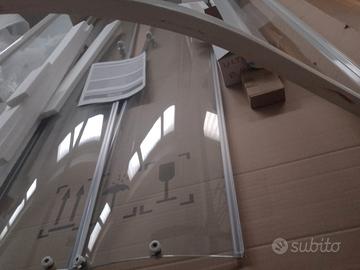 piatto doccia in ceramica 75 cm per 75 cm con parte curva più vetrata scorrevole