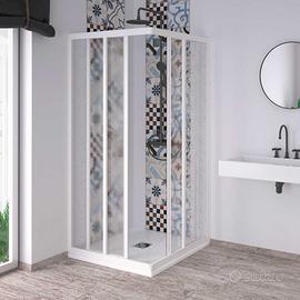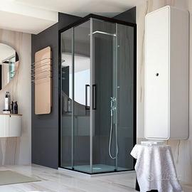 BOX e PORTA DOCCIA IN CRISTALLO CON VETRO TRASPARENTE O SATINATO, PROFILO CROMO, BIANCO, NERO OPPURE IN PVC