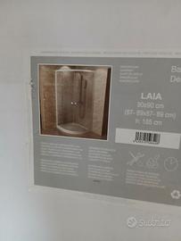 Vendo box doccia circolare in vetro Temperato serigrafato, profilo in alluminio bianco e cuscinetti a tenuta.Nuovo Sistema pulizia facile Misure 90x90 H. 185 cm