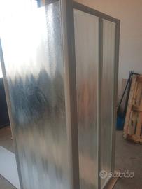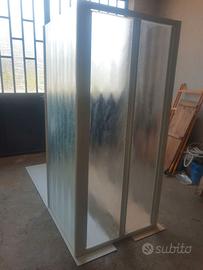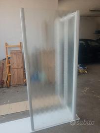 Box doccia piazzato in un ufficio e mai utilizzato pari al nuovo, in vetro temperato buccia di arancia, con i profili bianchi, una parete fissa e una porta con apertura a libro