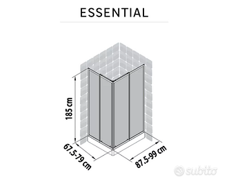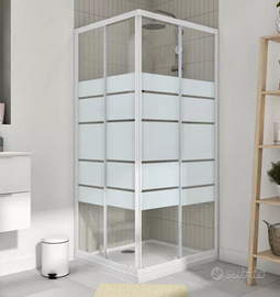 Box doccia rettangolare scorrevole 80 x 90 cm, H 185 cm in vetro, spessore 4 mm serigrafato bianco.