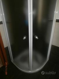 BOX DOCCIA STONDATO ANGOLARE 90X90, ANTE A BATTENTE CON APERTURA SIA INTERNA CHE ESTERNA,VETRO SATINATO,PROFILI RIVERNICIATI,GUARNIZIONI NUOVE.