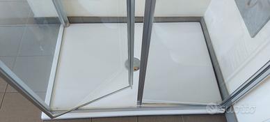 Offerta prodotto esposto in sala mostra nuovo box doccia Dino Sallon rettangolare 80x120 porta sallon regolabile da cm.116 a cm.122 h.200 cm. e lato fisso regolabile da cm.77 a cm.80 h.200 cm.cristallo temperato spessore 6mm trasparente . chiusura magnetica. reversibile. completo di piatto doccia in acrilico h.2,5 cm.80x120 completo di piletta sifone doccia e colonna doccia idromassaggio acciaio inox con miscelatore incorporato