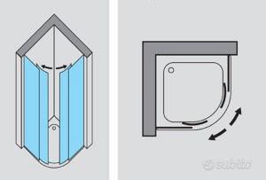 Box doccia semicircolare a quattro ante: due fisse e due apribili con chiusura magnetica. Profilo alluminio lucido