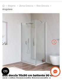 Vendo box doccia 90x70 in vetro con porta battente nuovo ancora con imballaggio originale. Vendo per misure errate. Consegna a mano su Mantova.