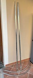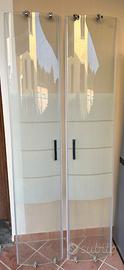 Box doccia quarto di cerchio reversibile ed estensibile 78,5-79.5 x 78,5-79,5 cm altezza 190 cm Vetro temperato serigrafato, spessore 5 mm, scorrimento su rotelle, profili in alluminio cromato, con ante sganciabili e chiusura magnetica.